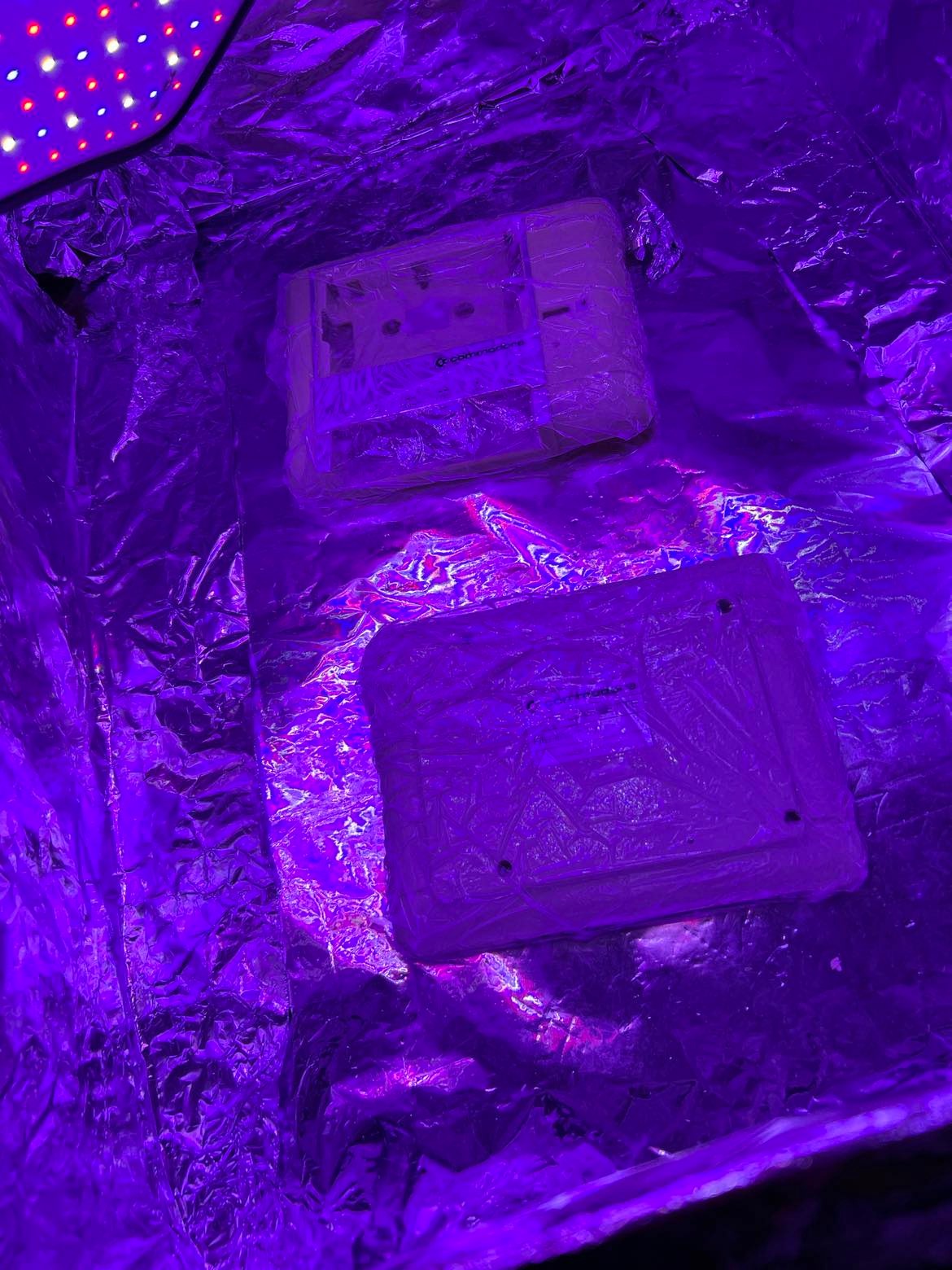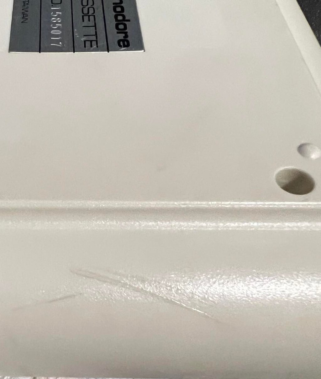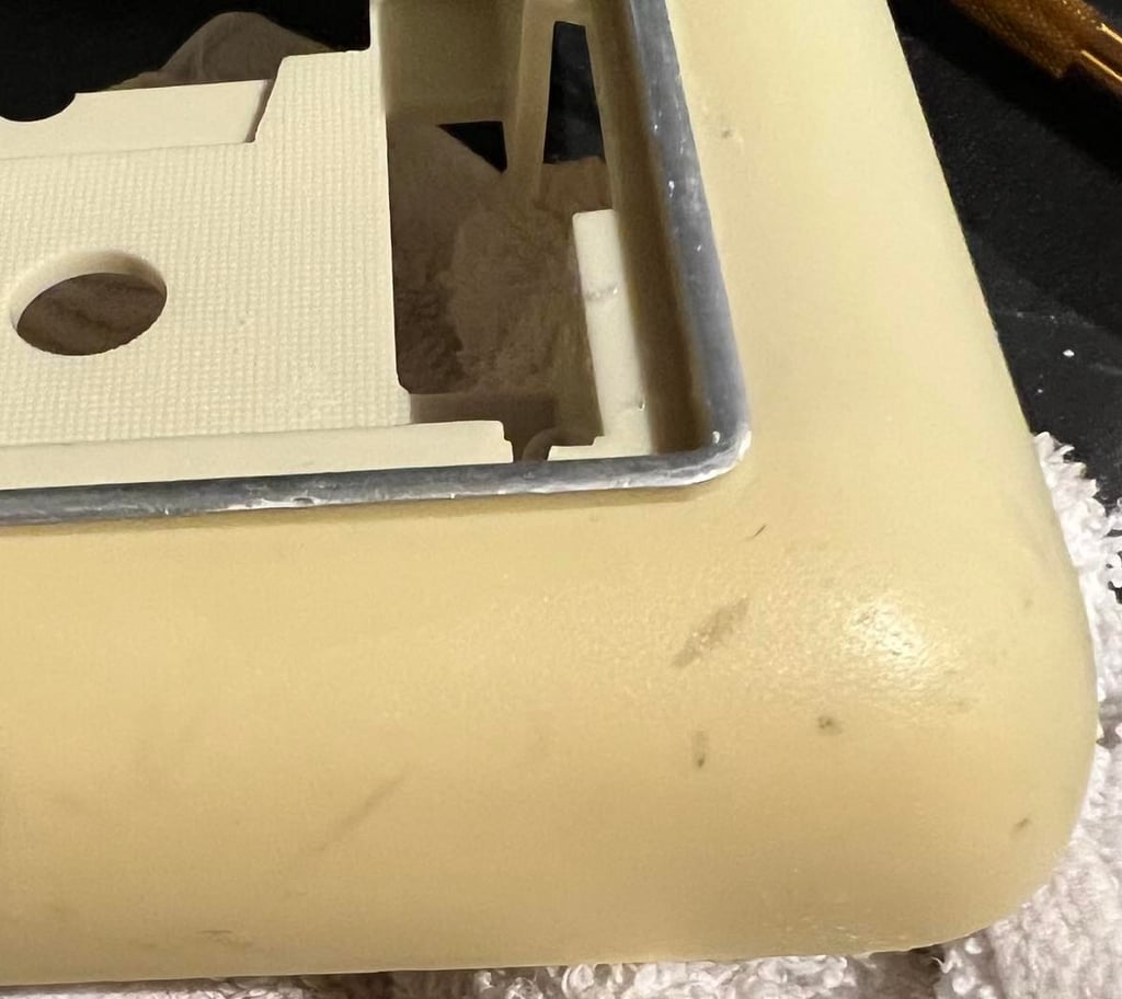 Top- and bottom cover is retrobrighted for about 10 hours in a UV-box. The plastic parts are smeared frequently with 12 % hydroperoxide cream.