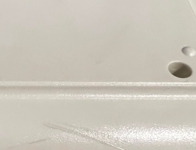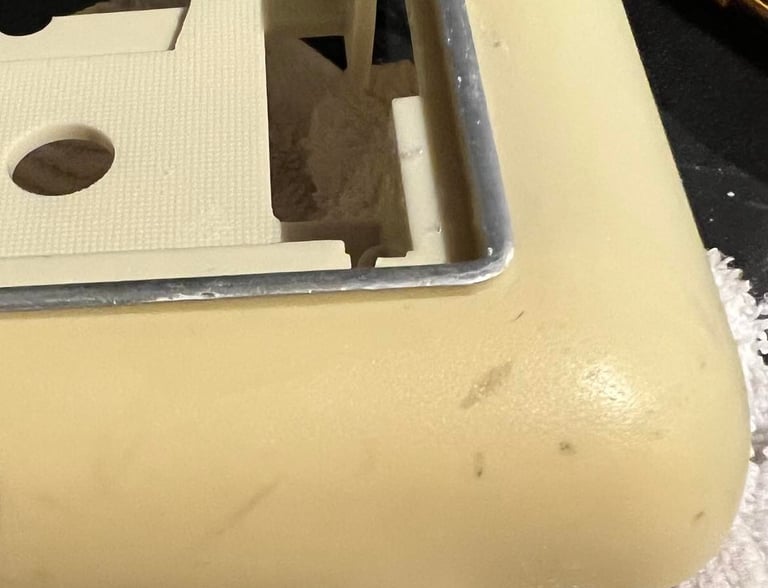 All plastic parts are cleaned thoroughly with mild soap water and a paint brush. After this initial cleaning there are still quite a few marks that needs special attention - see pictures below.