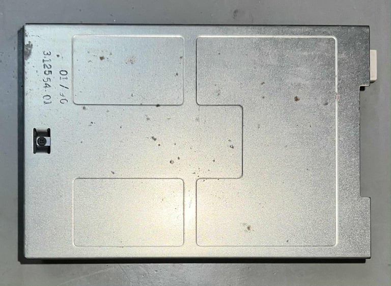 From the outside there is only a little bit of dust and grease. And there are no signs of damage. So even if this drive is described as "non-working" there are no obvious exterior signs of issues preventing it from working. What is very nice is that there is a date code on the top metal chassis saying "01/90". So I think we can assume that this drive was manufactured at the same time as the Amiga it was originally installed in.