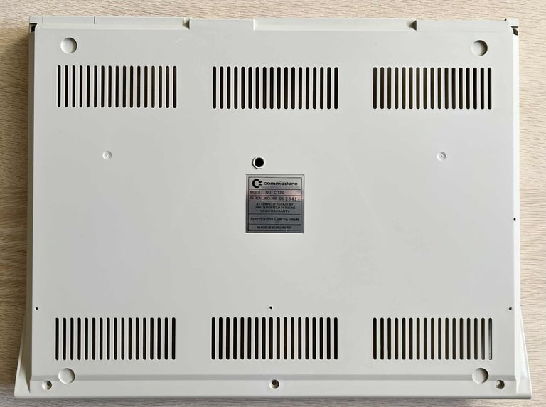 First action in the disassembly of the C128 is to remove the six 3 x 8 mm PH2 screws at the bottom of the machine. Make sure to use a low torque screw driver when doing this. As can be seen in the picture below, three of the screws can be found in the front, one in the middle and two at the back. One of the screws is also covered by the warranty seal which needs to be removed.