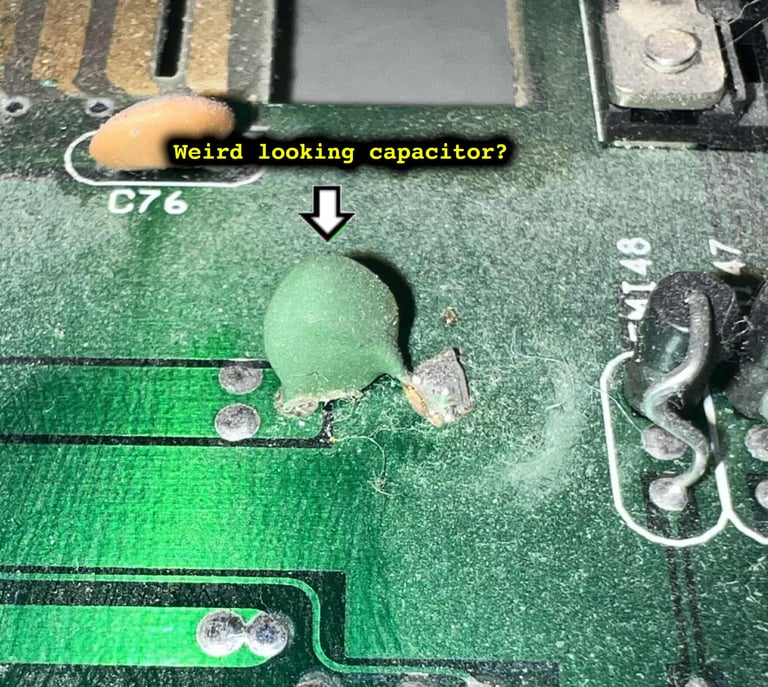 One of the small ceramic capacitors looks a bit twisted (see picture - taken before cleaning).