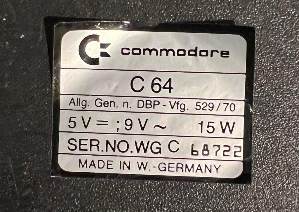 The "Commodore 64" and "Power" badge is removed from the top cover, and the serial number sticker is removed from the bottom. This is done by using some hot air from a hair dryer, and carefully removing them with a small sharp knife. The reason for removing the badges and sticker is to make sure they are not damaged during cleaning and retrobrighting.