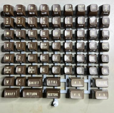 The SHIFT-LOCK key is removed by first desoldering the two wires at the backside of the keyboard. Then the SHIFT-LOCK is pushed firmly from the backside to the front - until it "pops" out. All the small screws are then removed and placed in a small plastic bag. This will then release the PCB itself from the plastic chassis.