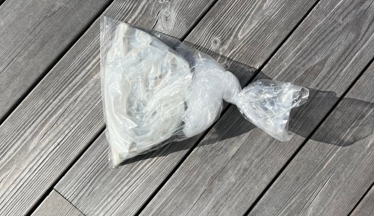 The keys are quite yellowed so I go for some retrobright. All keycaps are placed in a plastic bag which is filled with some 12 % hydroperoxid cream - and left for a whole week (!). The plastic bag is primarily kept inside with normal room temperature (and no UV), but occasionally placed outside when the weather is nice. I am very happy with the result! The keys looks way better after this retrobright. See pictures below.