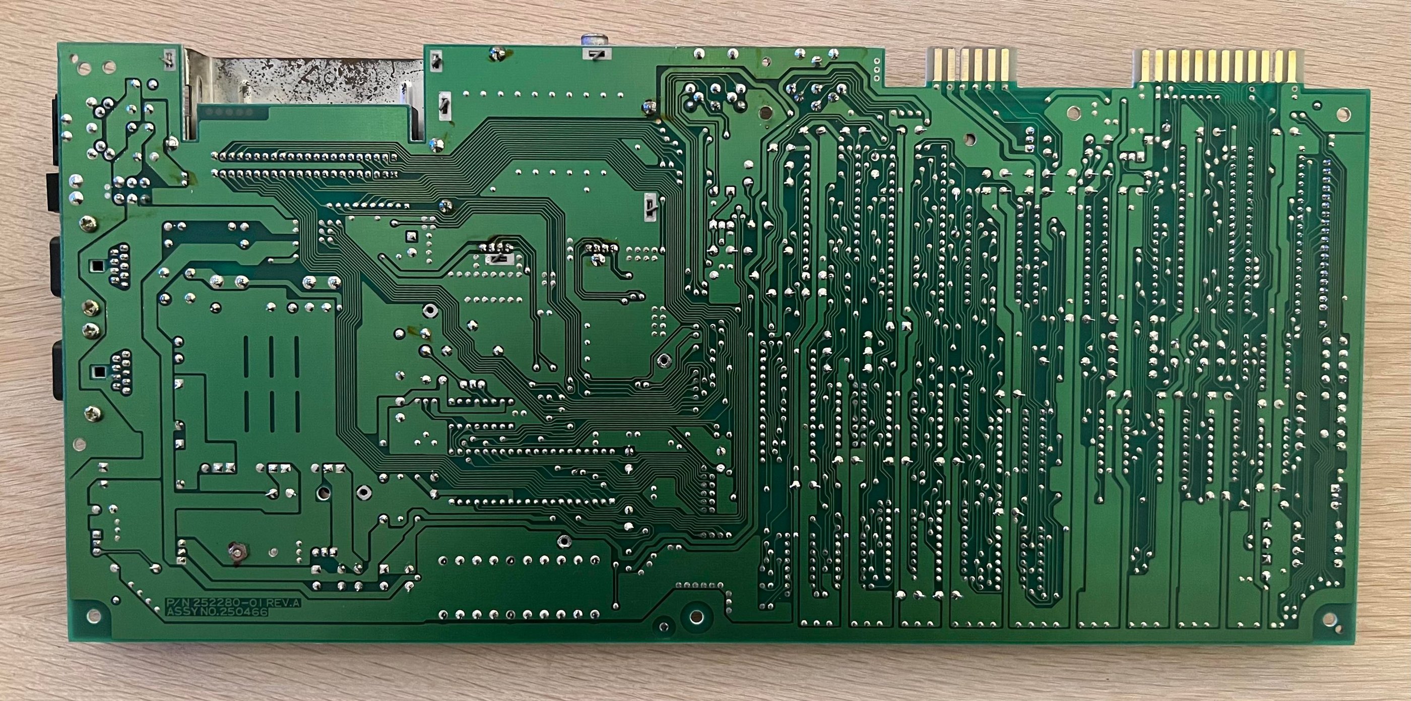 Desoldering the RF-modulator is not trivial. It is important to be both careful and patient to make sure no damage is made either to the mainboard or the RF-modulator. A detailed description can be found in the HOWTO article "Desolder the RF-modulator". The desoldering is a success - no traces or pads were lifted. See picture below.