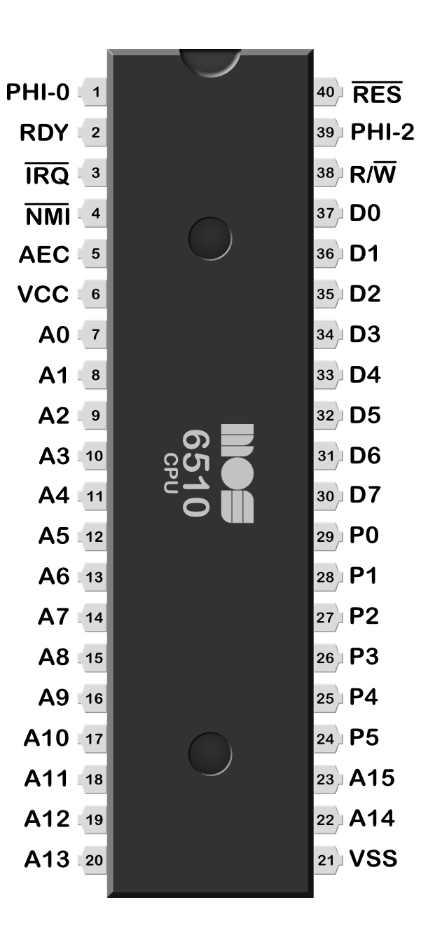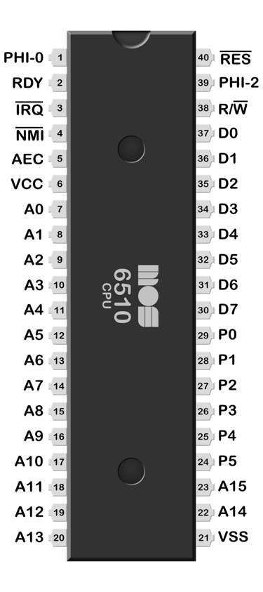 Interrupt ReQuest. When going LOW, the CPU loads the PC with the value stored in $FFFE / $FFFF after processing the current command. This procedure will be executed only when interrupts have been enabled (bit 2 in flag register = 0). Note that the IRQ signal must be applied until the CPU has checked this pin; a short IRQ pulse is not sufficient.