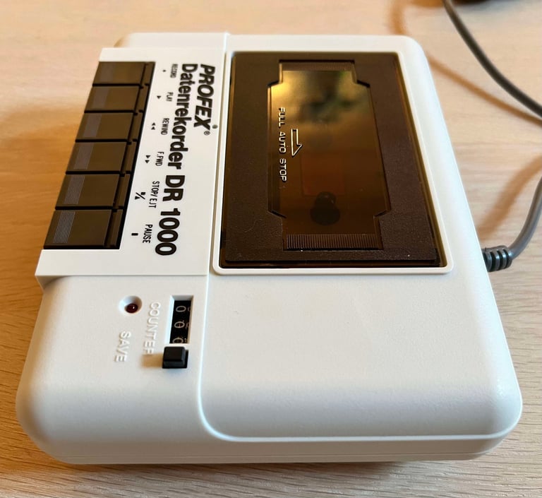 The saving functionality is also checked and verified. A small BASIC program is made and the SAVE command is used (and then the program is re-loaded). The LED is also on while recording is in progress.