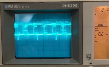 Settings on Philips/Fluke PM3055 60 MHz analog oscilloscope: