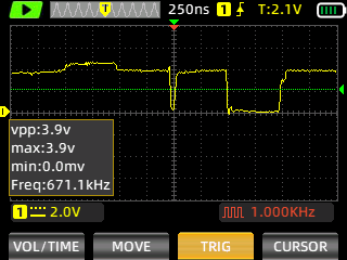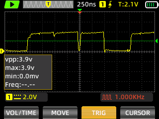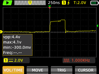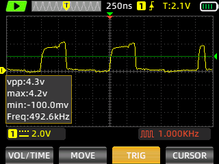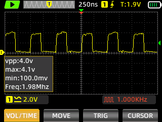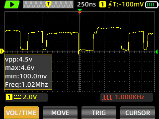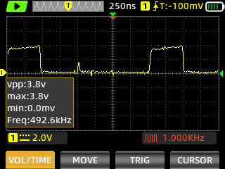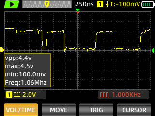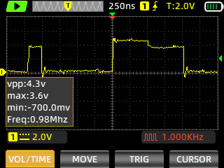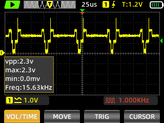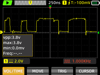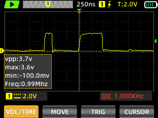 Still images of the signal are captured with ZOYI ZT-703S portable oscilloscope.